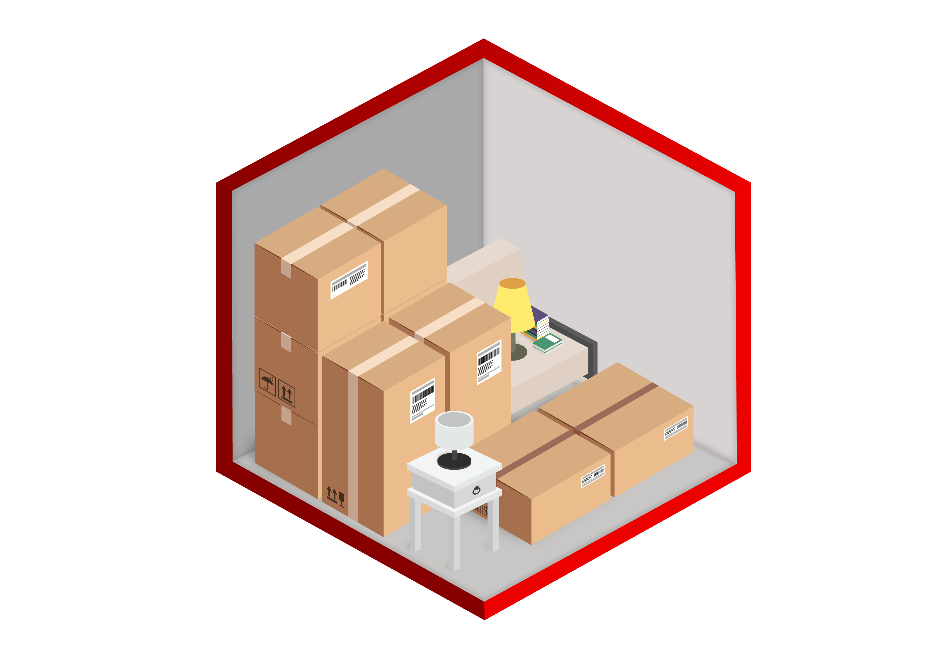 8' × 10' Swinging door 42" - 44" wide. Drive up access. Fits 1-2 rooms of household goods. Lots of boxes and a few pieces of furniture. Great for gardening or shop tools as well.